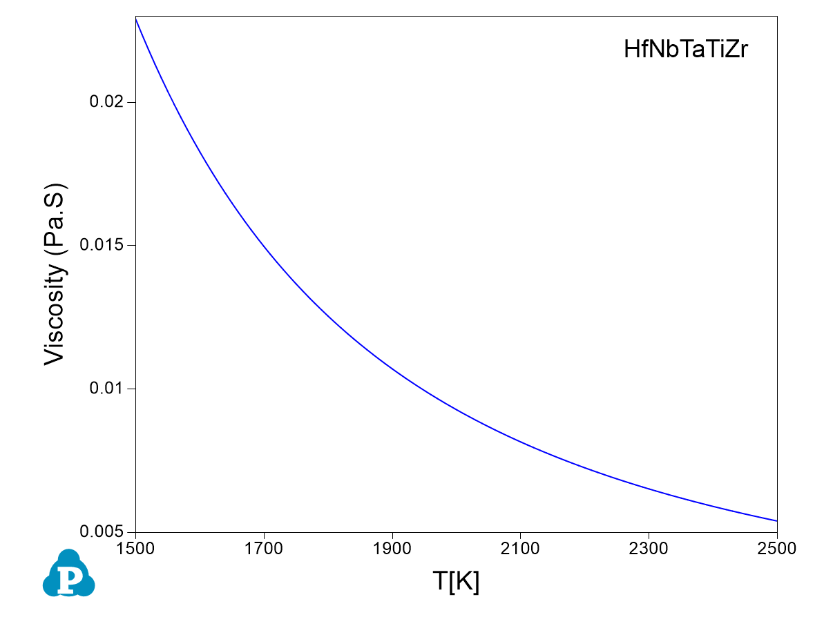 The viscosity of the liquid phase is added into the property database. Figure 3.3 shows the viscosity of the HfNbTaTiZr refractory high entropy alloy.