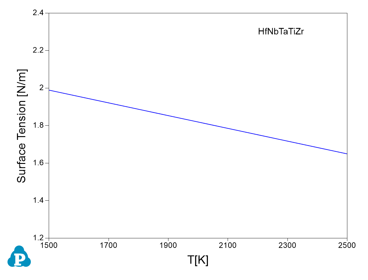 The surface tension of the liquid phase is added into the property database. Figure 3.2 shows the surface tension of the HfNbTaTiZr refractory high entropy alloy.