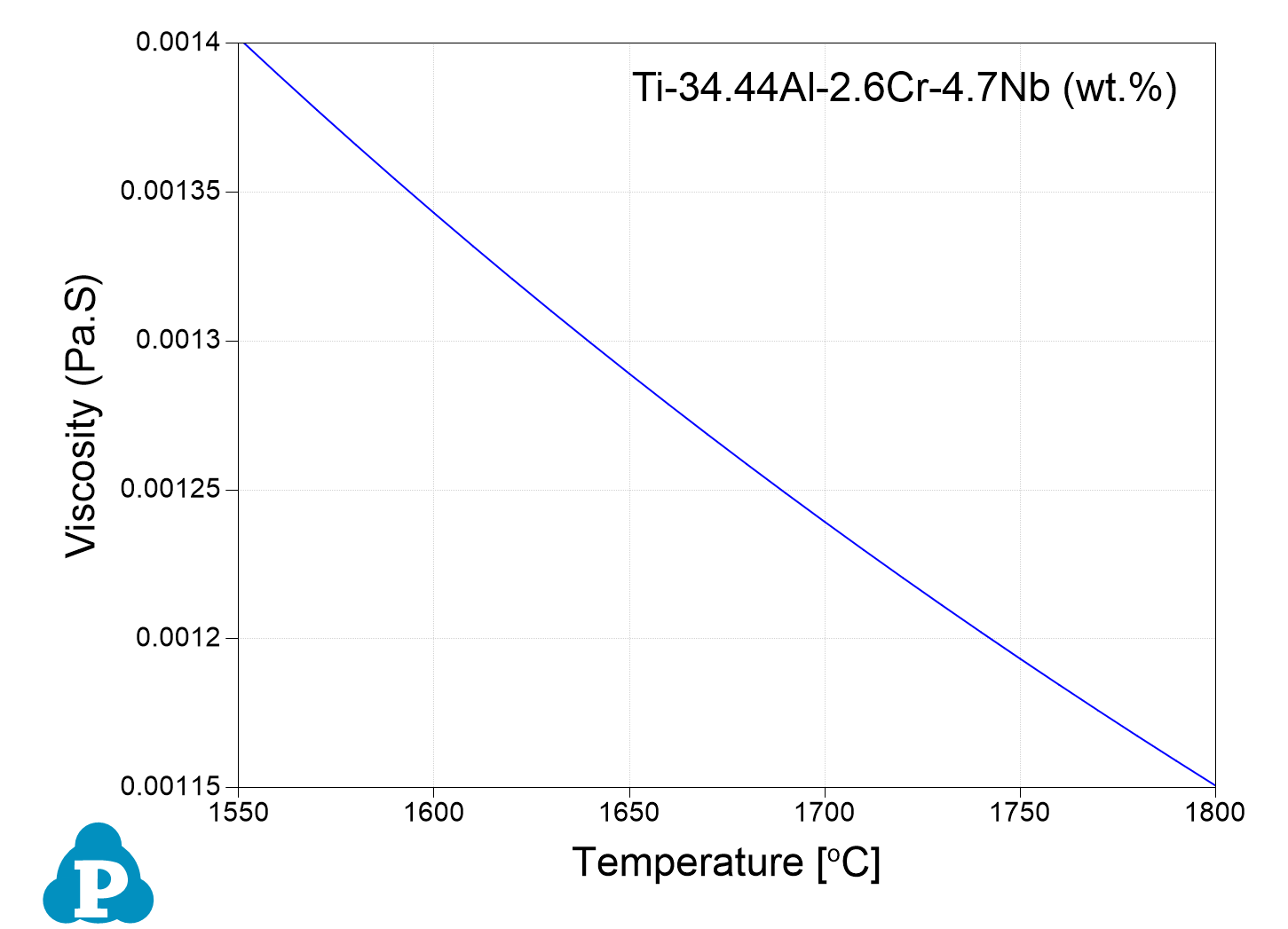 The viscosity of the liquid phase is added into the property database. Figure 3.4 shows the viscosity of the TiAl4822 alloy.