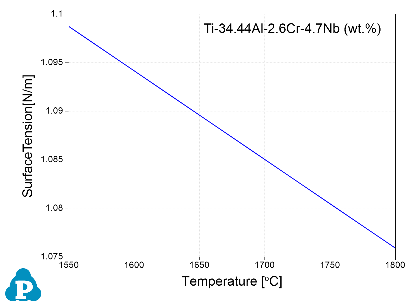 The surface tension of the liquid phase is added into the property database. Figure 3.3 shows the surface tension of the TiAl4822 (Ti-34.44Al-2.6Cr-4.7Nb, wt.%) alloy.