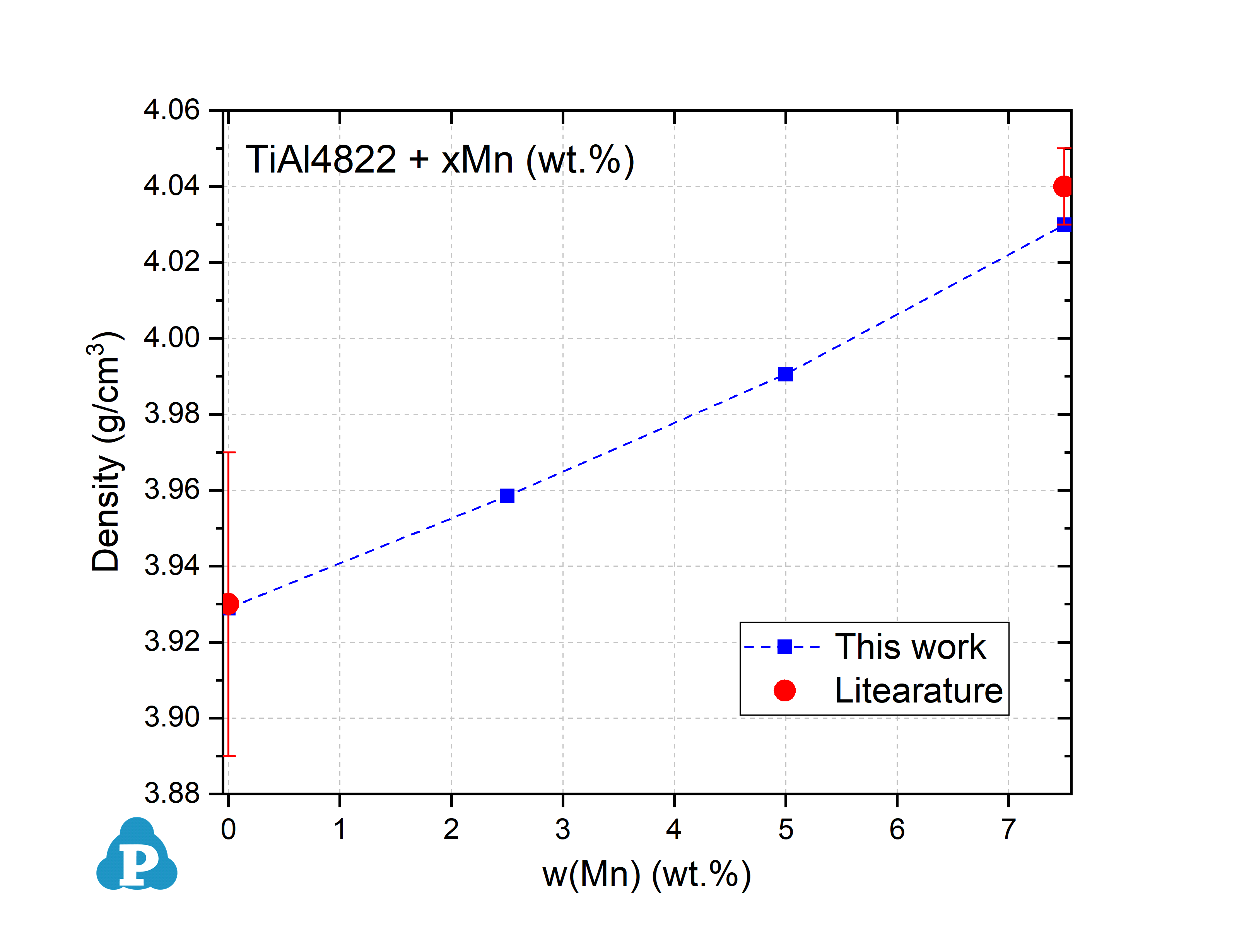 Figure 3.2: Density of TiAl4822+Mn sintered at 1150 °C [2020Ann]