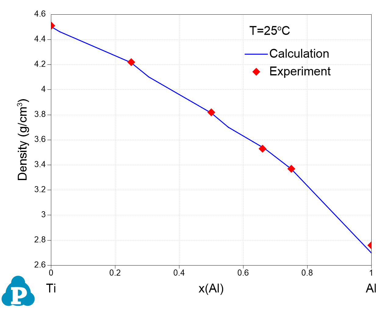 Figure 3.1: Density of Ti-Al binary alloys at 25 °C [1992ASM]