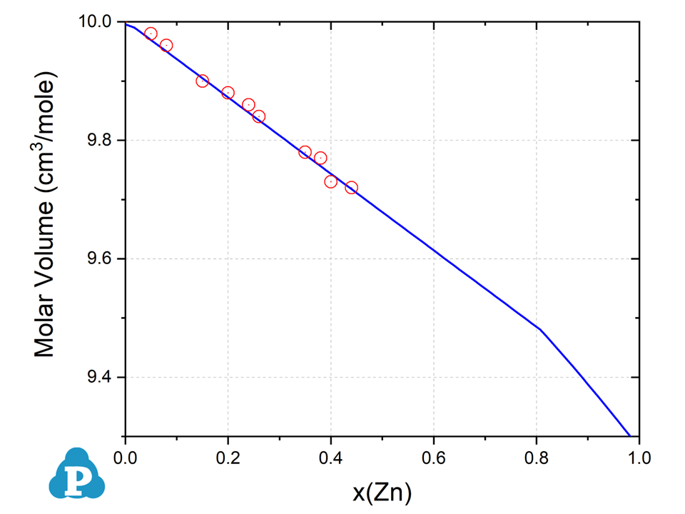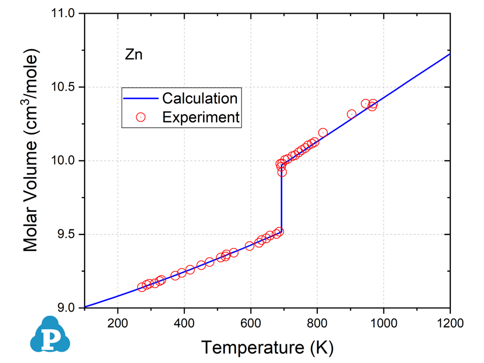 The current molar volume database covers all phases assessed in the PanZn_TH database. It is used to calculate the density, thermal expansion and solidification shrinkage of Zn alloys.