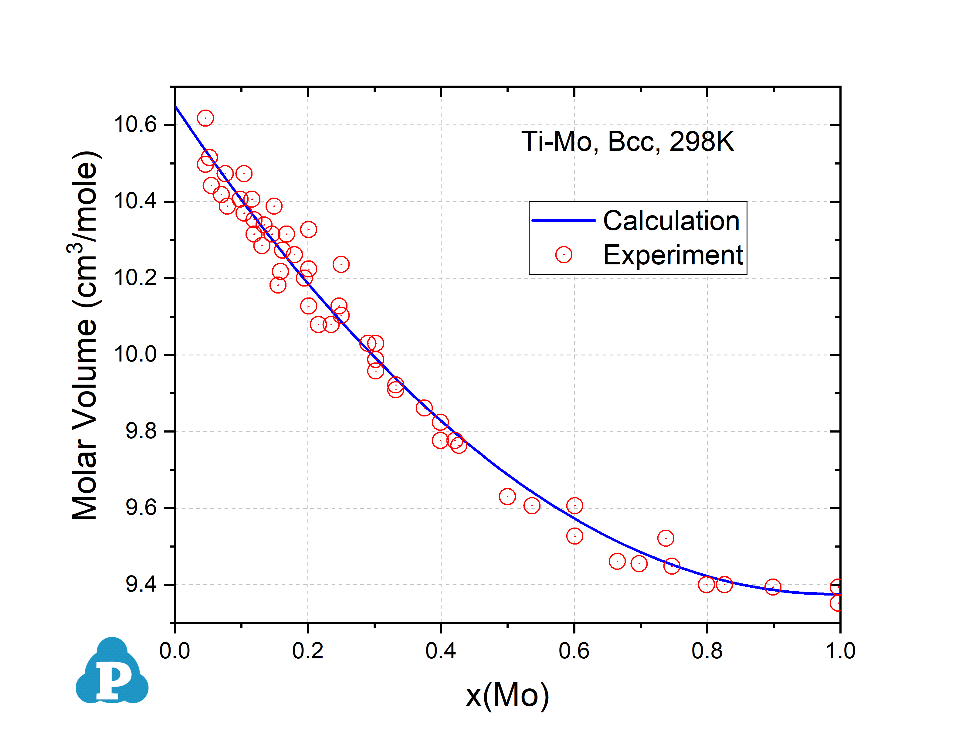 The current molar volume database covers all 208 phases assessed in the PanMo_TH database. It is used to calculate the density, thermal expansion, solidification shrinkage of Mo alloys.