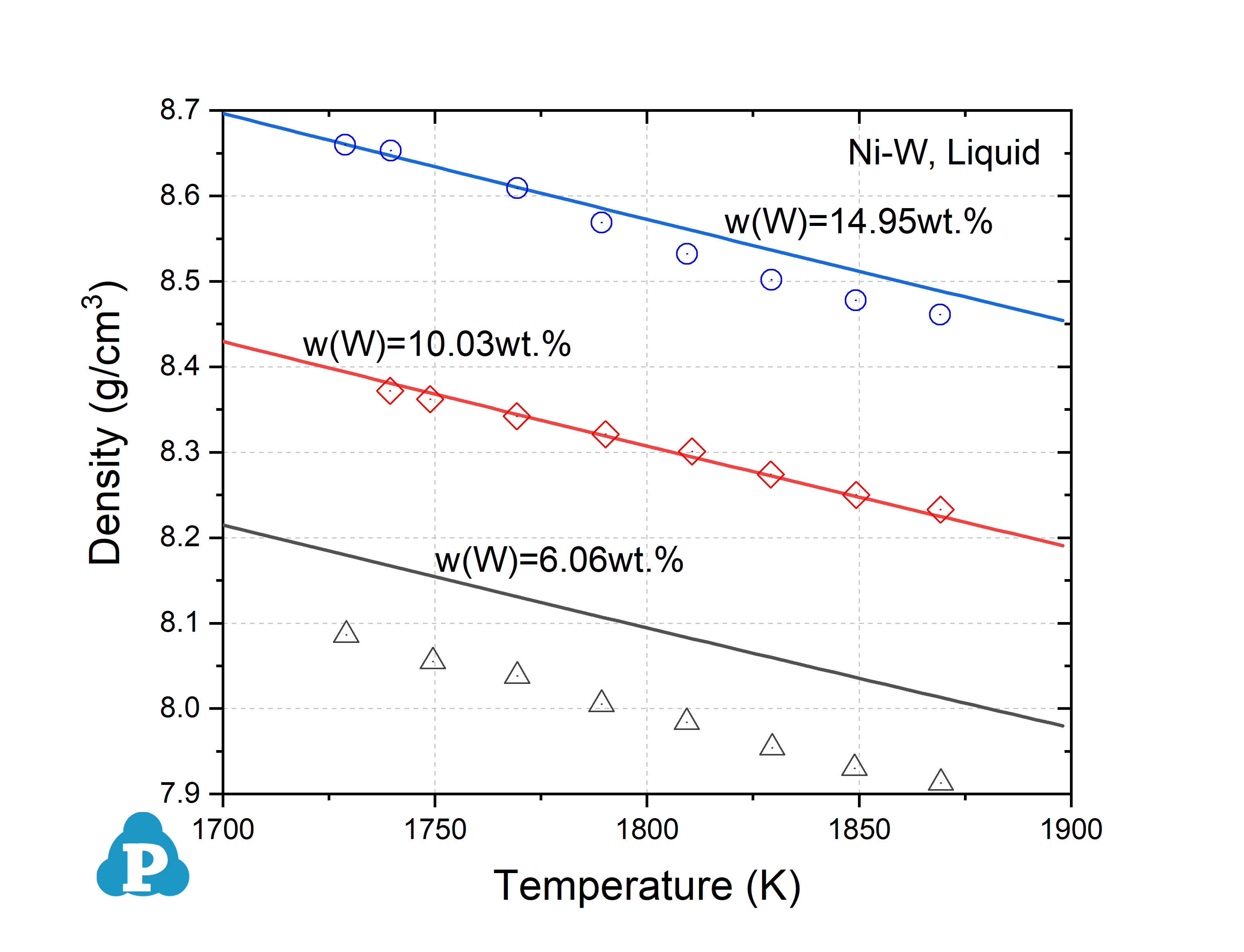 [2005Fan2] L. Fang, et al., Measurement and analysis of density of molten Ni-W alloys. Journal of Wuhan University of Technology, 20(3) (2005): 84-87.