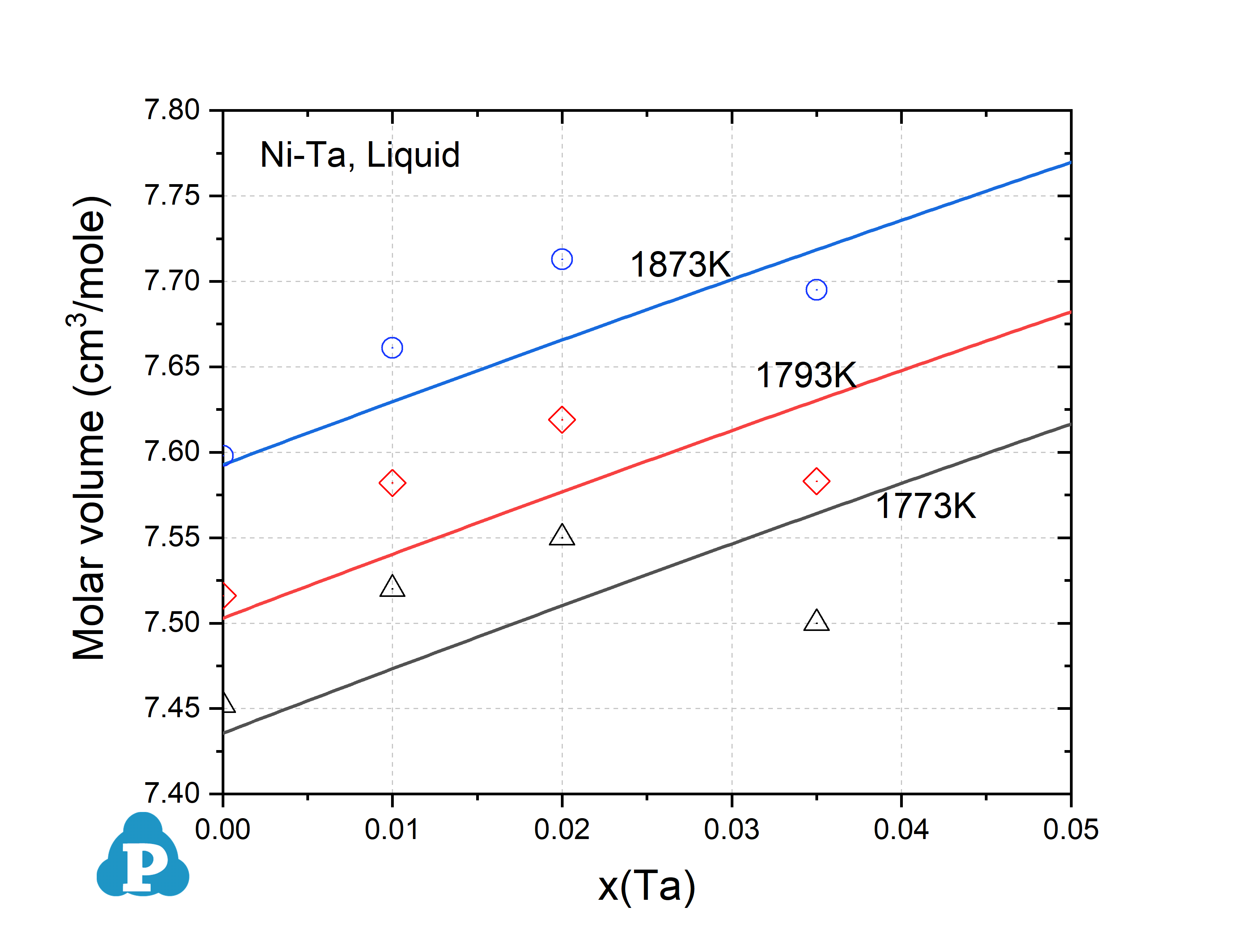 [2005Fan] L. Fang, et al., Measurement of density of molten Ni-Ta alloys by a modified pycnometric method. Rare Metal Materials and Engineering, 34(4) (2005): 521-525.