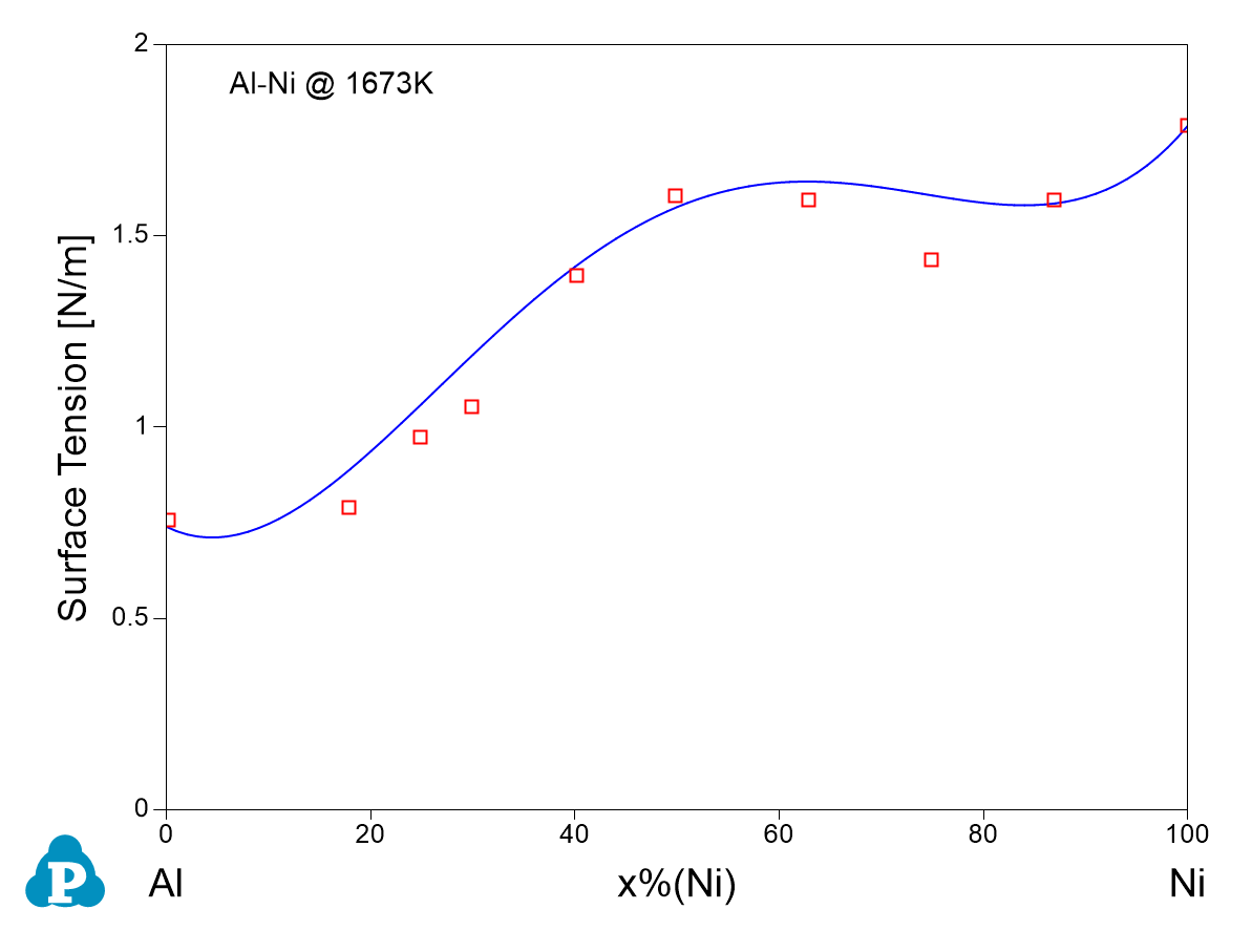 The surface tension of the liquid phase is added into the property database. Figure 3.3 shows the surface tension of a series of Al-Ni alloys in comparison with experimental data.