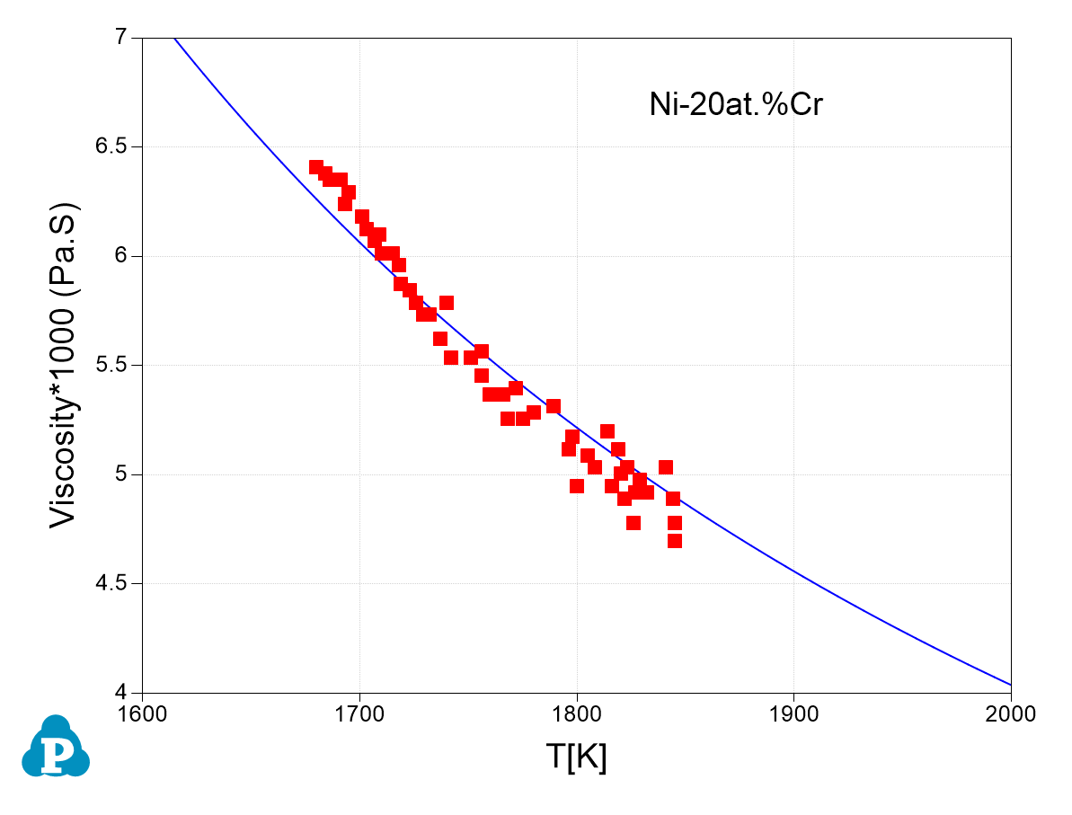 The viscosity of the liquid phase is added into the property database. Figure 3.4 shows the viscosity of Ni-Cr alloy in comparison with experimental data.
