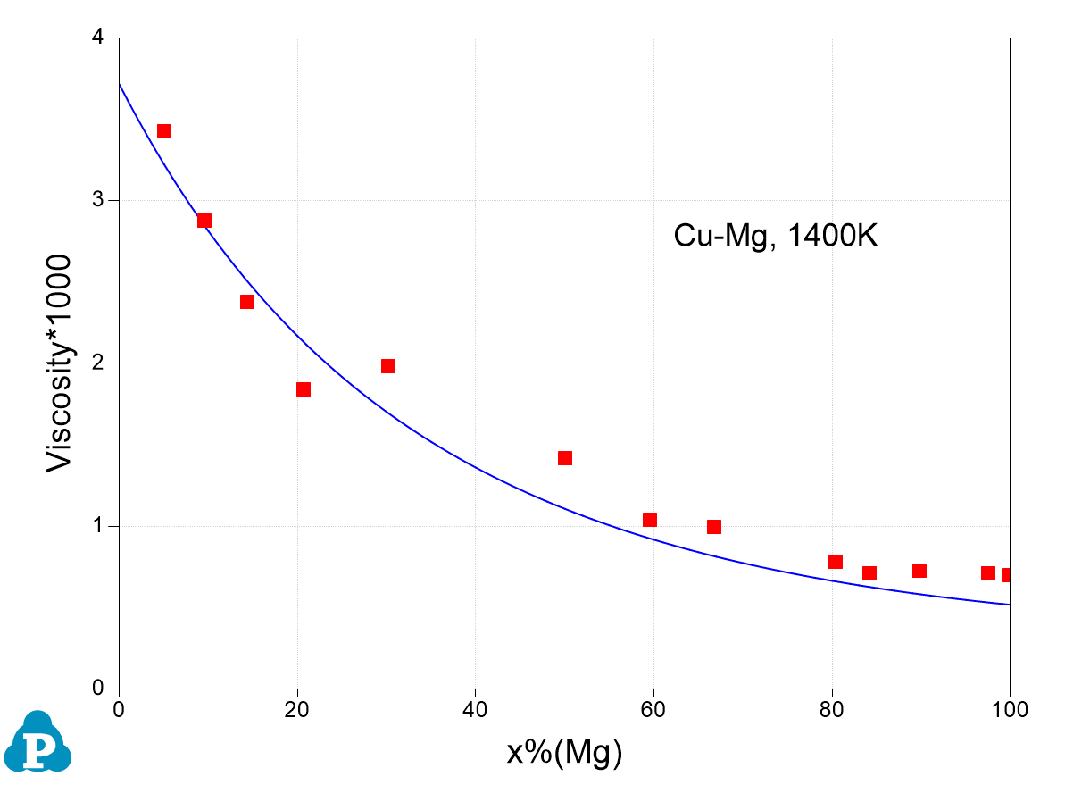 The viscosity of the liquid phase is added into the property database. Figure 3.4 shows the viscosity of Cu-Mg alloys in comparison with experimental data.