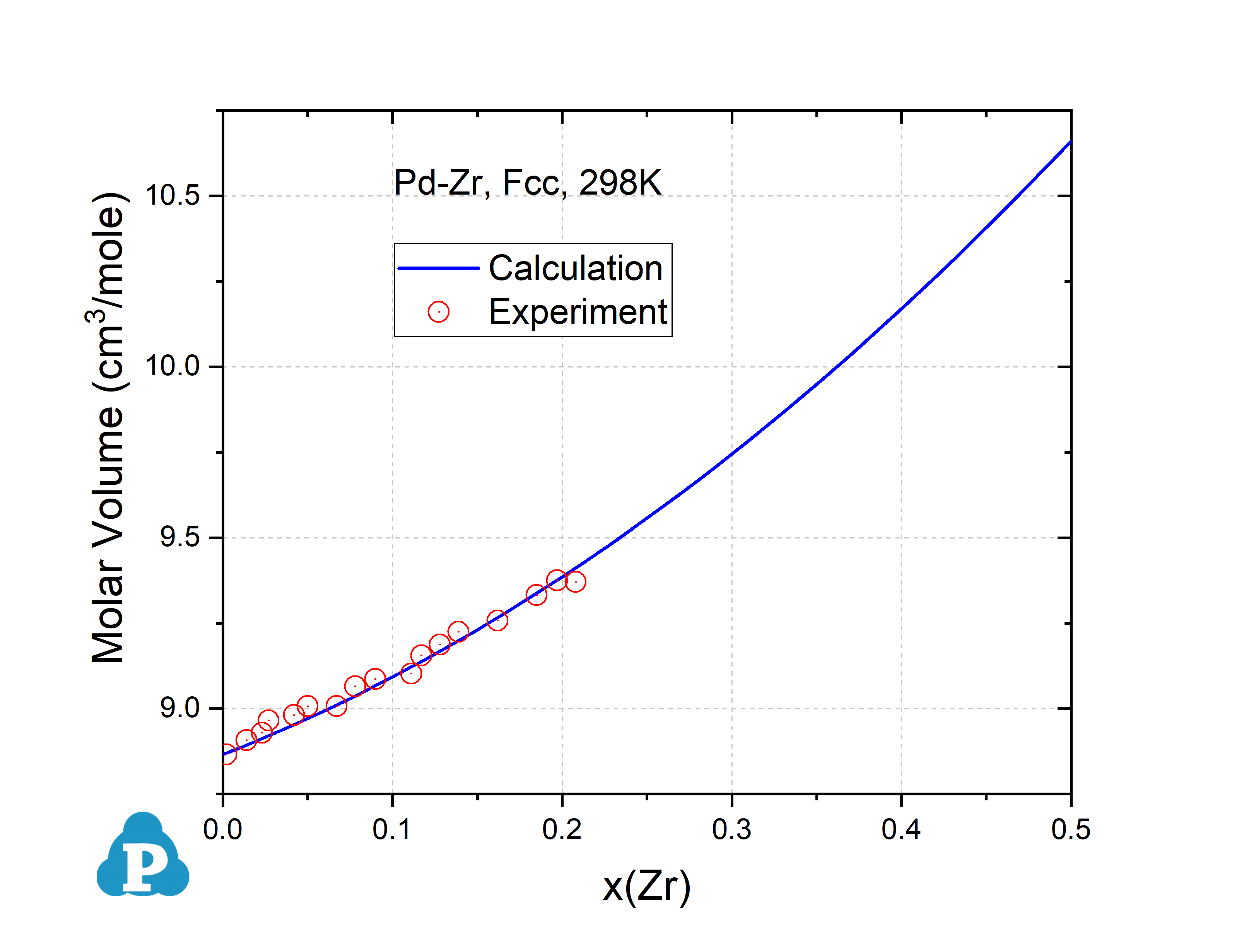 Figure 3.2: Molar volume of Pd-Zr Fcc binary alloys at 298K [2013He]