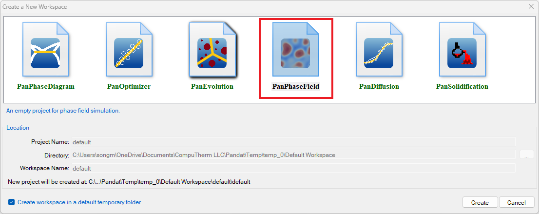 Figure 8.3: Creating a PanPhaseField workspace