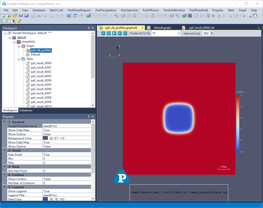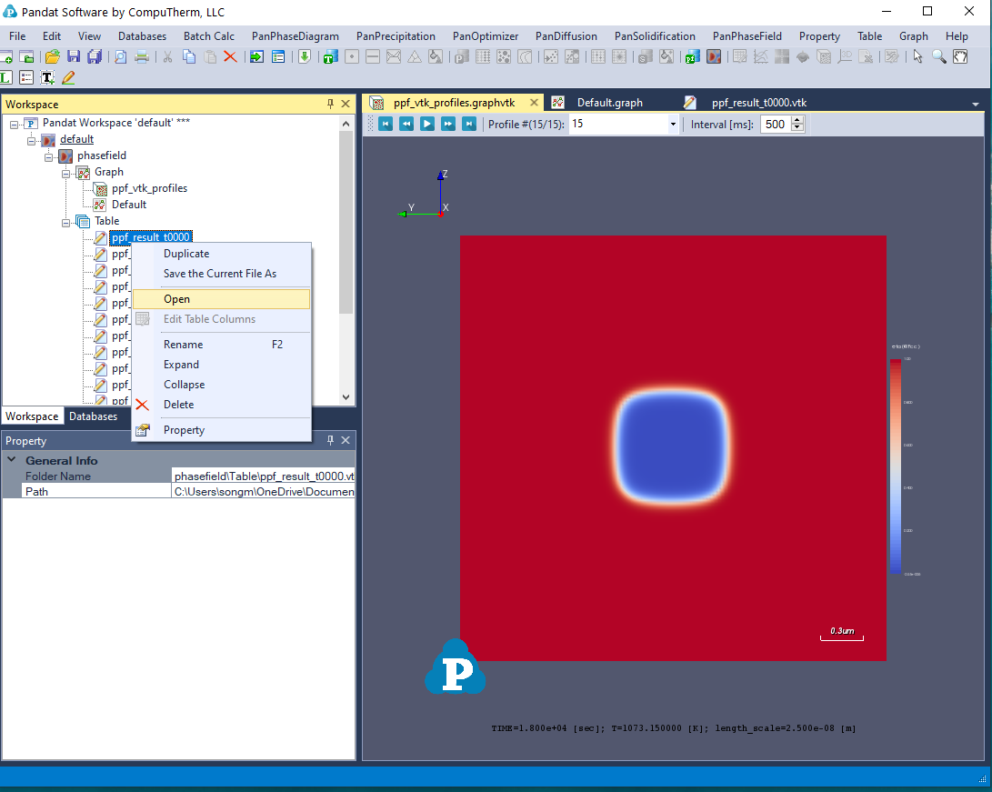 Simulation results (VTK files) from batch mode (without using GUI) can be loaded to Pandat workspace for visualization. Users need to prepare two items to visualize VTK files in Pandat workspace: