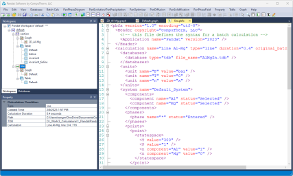 Since a batch file is a text file using xml language, it can be viewed and edited by any text editor. However, all keywords and value in the batch file are highlighted in Pandat text editor as shown in the Figure 3, which make it more efficient for the user to edit the batch file. User can open a batch file in Pandat text editor by using “open file”, or simply drag and drop the batch file into Pandat main window. Again, it should point out that user does not need to remember the batch file formats, instead one may create a batch file of certain type of calculation through user interface, then modify the calculation condition through editing a batch file as needed.