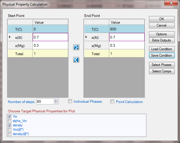 Set Calculation Condition as shown in Figure 2. The property selected is Vm (molar volume) and density;