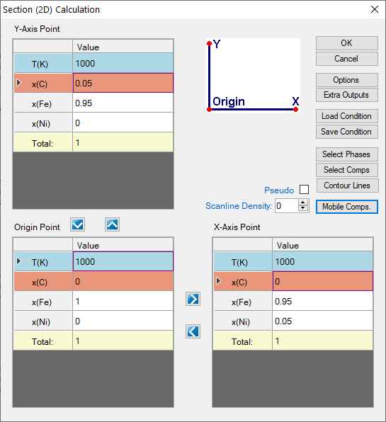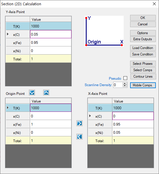 Perform a Section Calculation from PanPhaseDiagram, and set the calculation condition as shown in Figure 1;