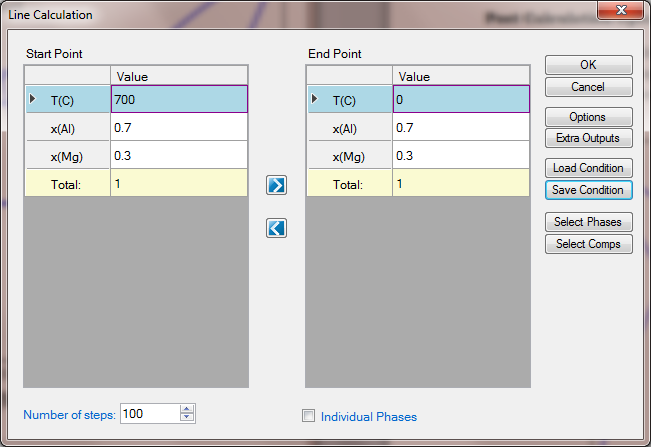 Load AlMgZn.tdb following the procedure in Pandat User's Guide: Load Database, and select Al and Mg two components;
