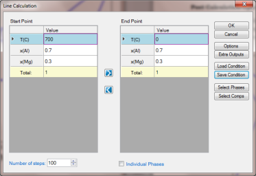 Perform 1D calculation following the procedure in Pandat User's Guide: Line Calculation (1D);