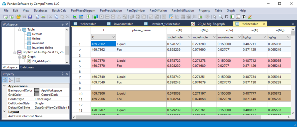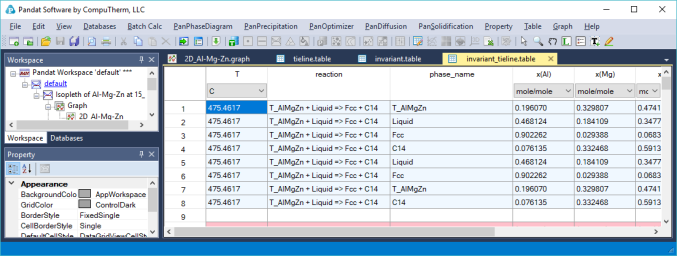 The invariant reactions and the phase composition for every phase in the invariant reaction are listed in invariant_tieline table as shown in Figure 4.