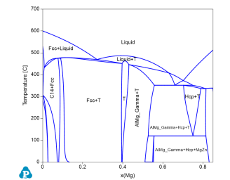 Phase stability as a function of composition of Mg and temperature. Single phase, two-phase, and three-phase regions, can be viewed clearly at different composition and temperature;