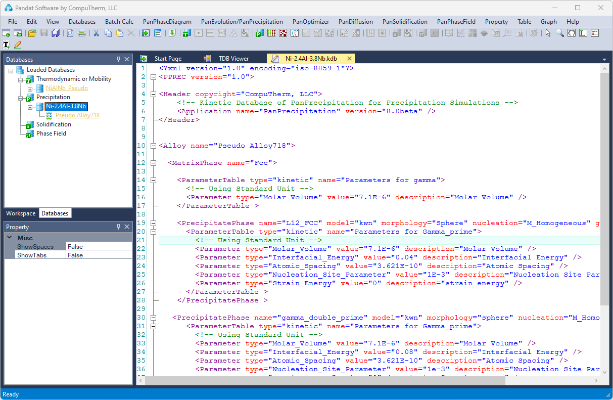 Open the Ni-2.4Al-3.8Nb.kdb from Pandat workspace through the menu "File → Open File", and view the kinetic parameters as shown in Figure 2;