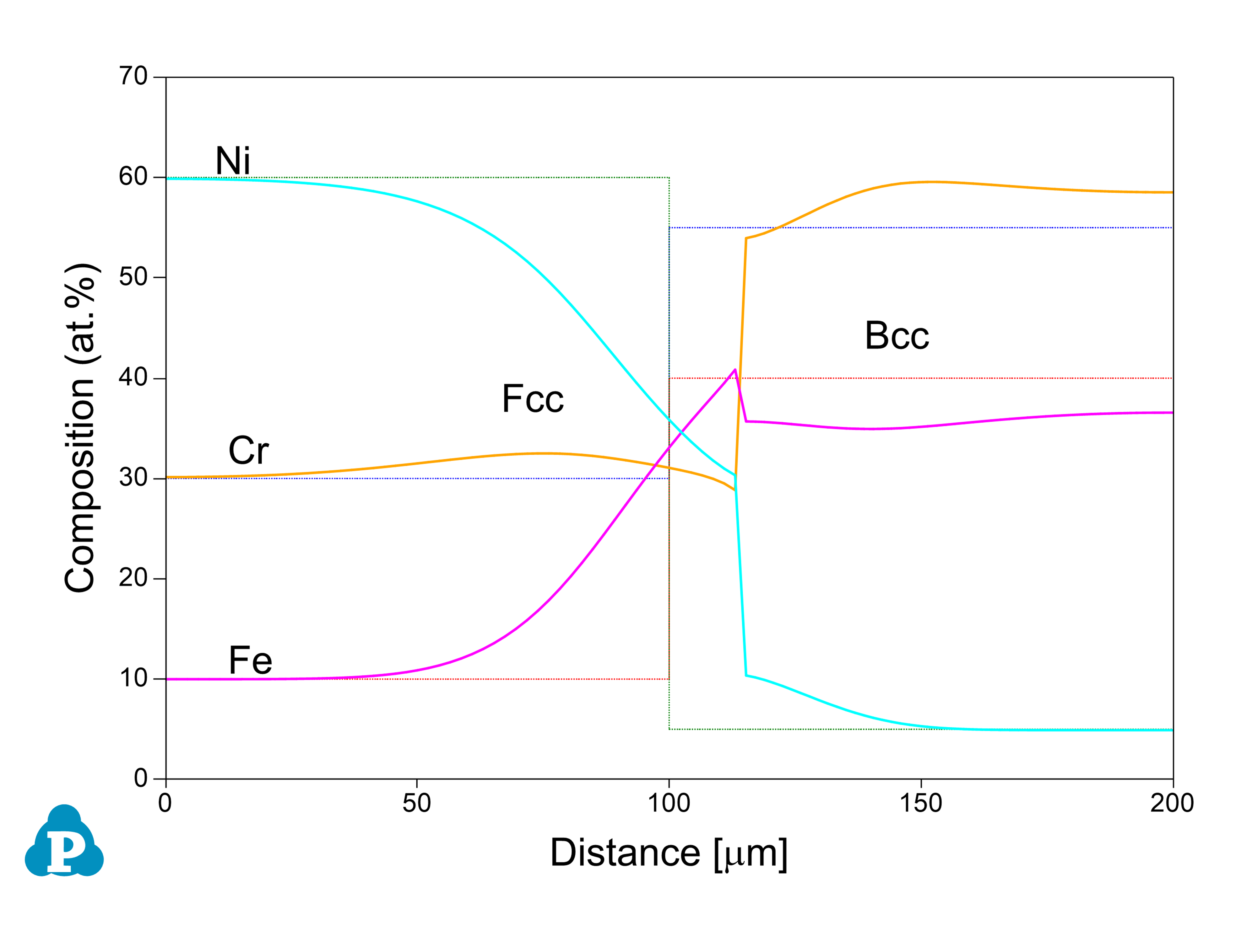 Purpose: Learn to perform diffusion simulation at varied temperatures for a diffusion couple with the two sides having different phase structure and uniform composition through each side before diffusion.