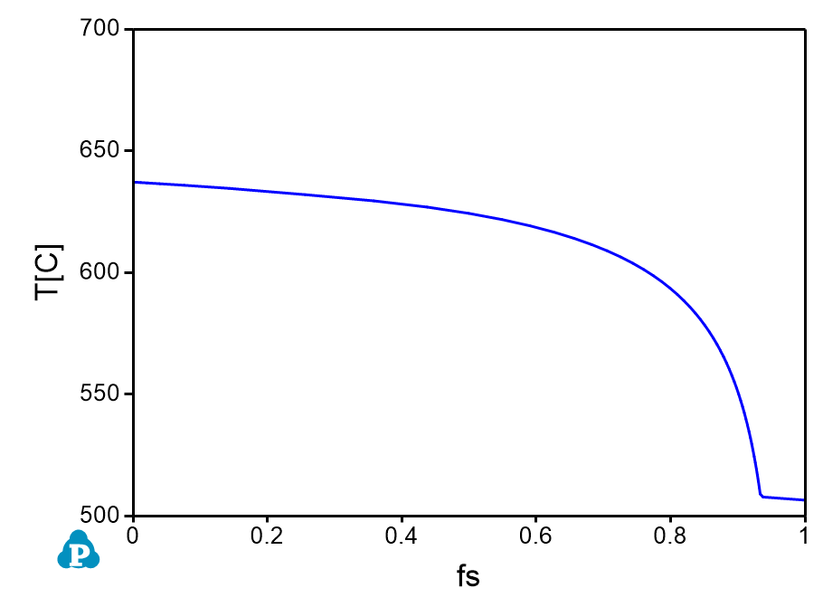 The default plot presents the relationship between fraction of solid (fs) and temperature during solidification as shown in Figure 5.
