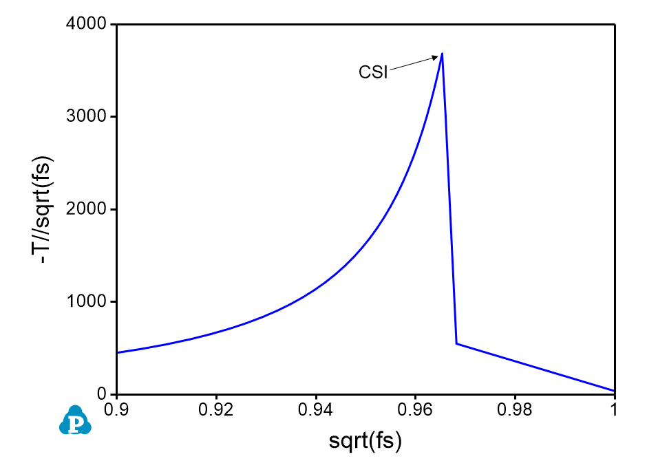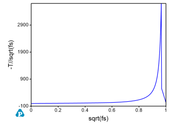 Figure 7: Rescale of Figure 6 showing the maximum point of -T//sqrt(fs) with sqrt(fs) < 0.99.