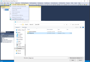 Multiple databases can be loaded into the same workspace but only one is activated. The current calculation will use the activated database, which is highlighted in the explorer window at Database view. The user may set the inactive database to be active with right click of the mouse as shown in Figure 5.
