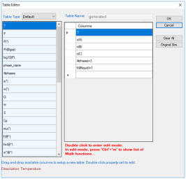 A special column property name “tieline” is introduced to create a table of tielines from the calculated results. It can be combined with other column constraints to select a special set of tielines.