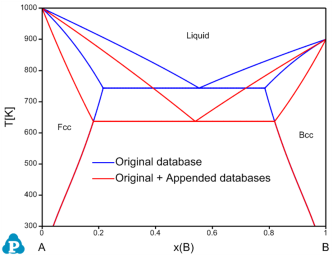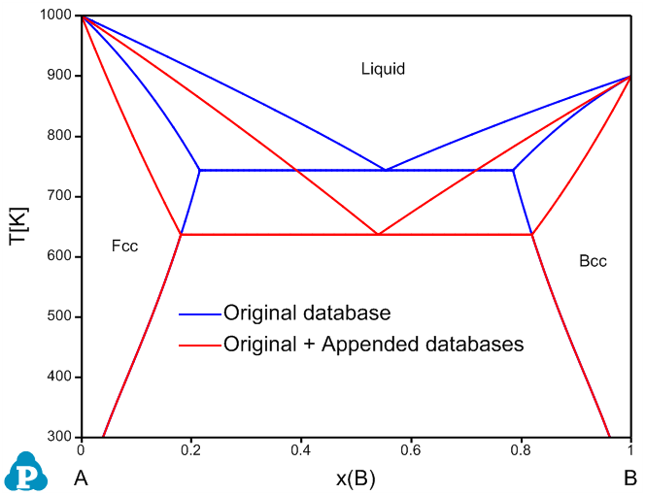 The calculated phase diagrams using both original database and original + appended databases are shown in Figure 1.