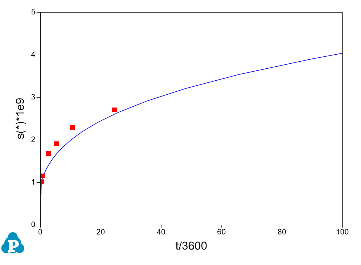 And the experimental data can be plotted together with the calculated results using the syntax below to obtain a diagram as shown in Figure 9.
